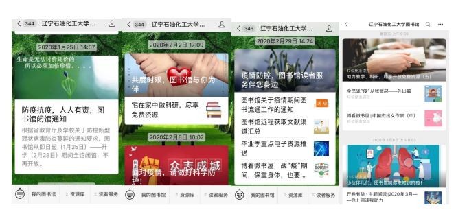 在这场疫情防控阻击战中,辽宁石油化工大学图书馆将不忘“服务”初心,牢记“育人”使命,秉承“读者第一,服务至上”的宗旨,想读者之所想,急读者之所急,保障全校读者全覆盖线上服务通道顺畅无阻,交出让读者满意的战“疫”答卷!