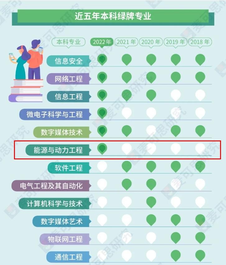 绿牌专业是指失业量较小,毕业去向落实率、薪资和就业满意度综合较高的专业,是需求增长性专业,2022年,能源与动力工程专业凭借着高于全国平均水平的收入和较高的就业满意度首次入选绿牌专业。