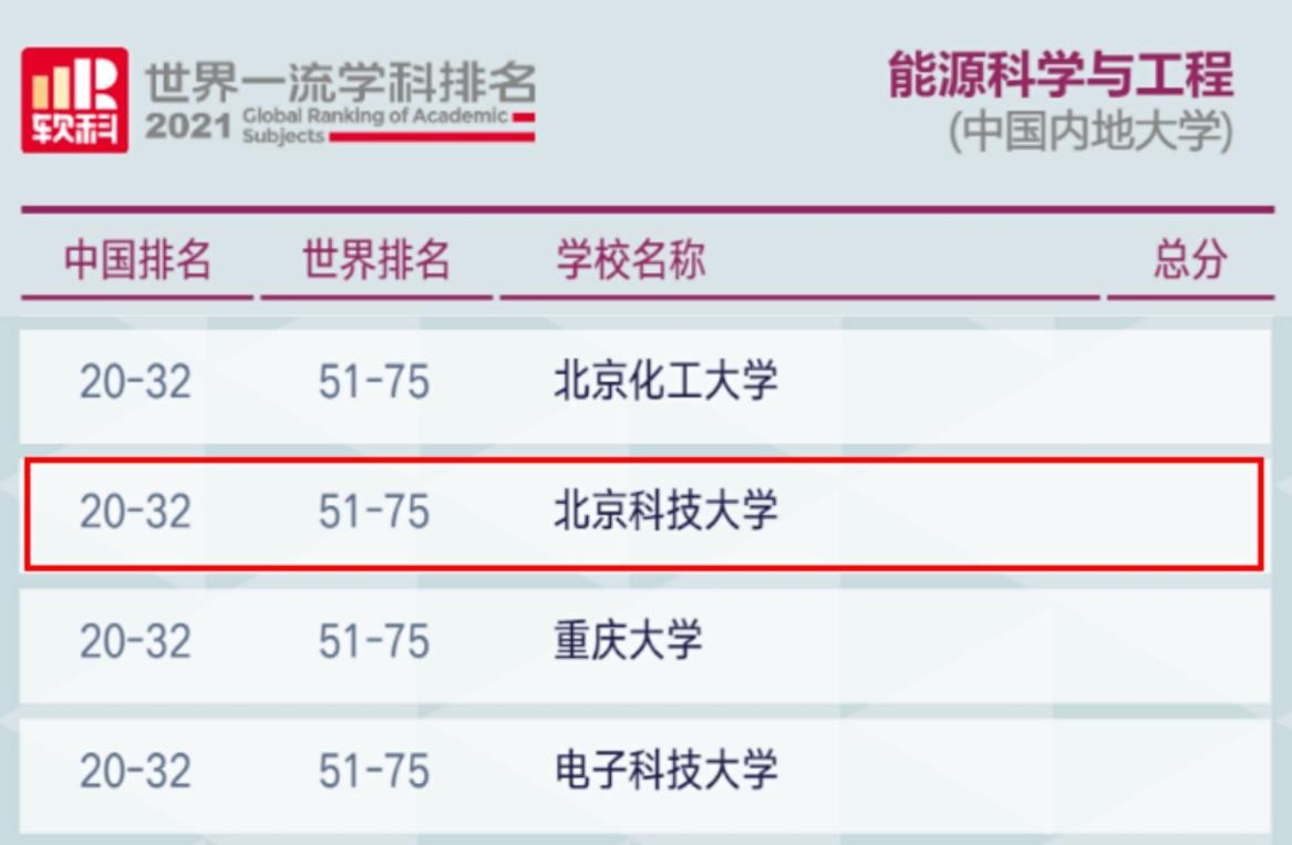 北京科技大学能源与动力工程专业优势明显,是国家级一流本科专业建设点、北京高校“重点建设一流专业”,在2021年软科世界一流学科排名中,能源科学与工程学科进入全球100强。