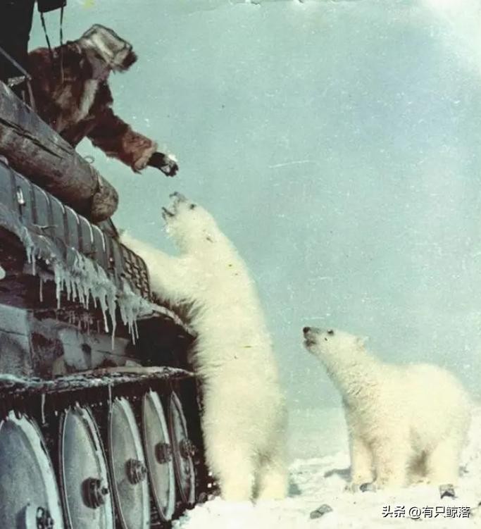 14 一名俄罗斯士兵正在坦克上喂北极熊