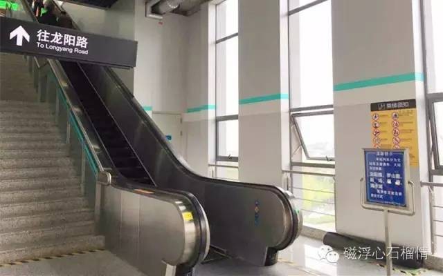 由于龙阳路车站大站车与普通车停靠站台不在同一侧,因此在1、2号站台上的无障碍电梯及候车亭的玻璃上张贴引导导向,以区分大站车站台及普通车站台,方便乘客乘车。