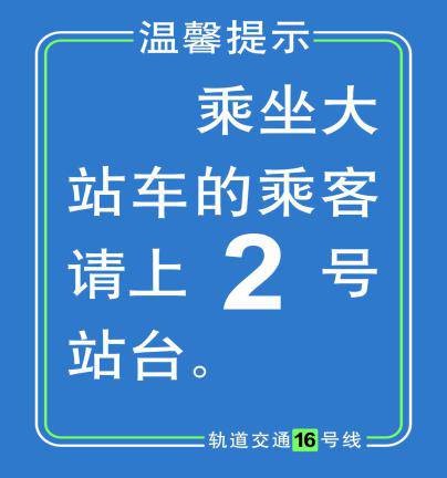 提示2:龙阳路站、滴水湖站乘坐“大站车”请在2号站台候车