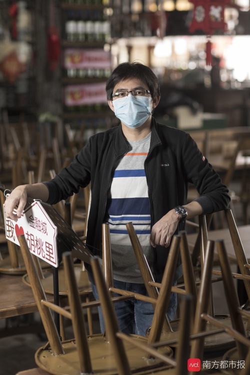 3月6日,记者在胡桃里金融城店采访李斌时,店里的灯大部分关着,餐厅的椅子都反扣在餐桌上,他抱着手提电脑正在跟员工开会讨论扩大团餐的事。“困难是无法回避的,只有更努力地去抗击,”李斌说,他依然保持着一贯的乐观。在新冠肺炎疫情这场“战疫”中,医护人员是一线冲锋救人的,但是普通人宅在家里也是为战疫做贡献,而李斌的目标很明确,他的战疫就是救自己和员工,养活大家庭。