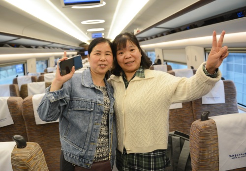 在株洲上车的沈女士是特地去香港看女儿的,恰巧的是上车后遇到了也是去香港看女儿的另一位妈妈。二位母亲一见如故,非常高兴地攀谈起来。沈女士和另一位妈妈开心地挥着手说:“女儿,妈妈看你来了!”