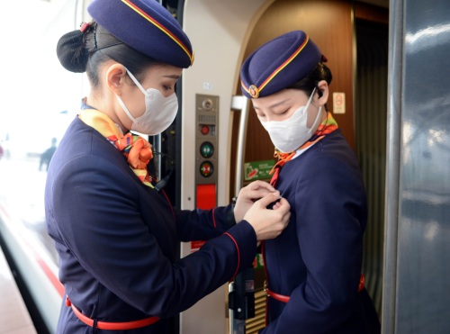 长沙客运段副队长欧洁告诉记者,长沙客运队高铁一队调配了48名乘务员担负进港列车的乘务工作,在人员配置上,每一个班组都配备了一名精通英语口语的英语小能手,能够流利地和外籍旅客对话。“高6113次全体乘务员以优质的服务伴您同行!”