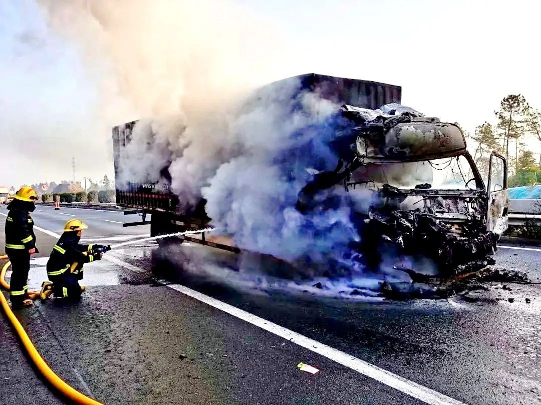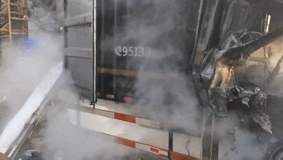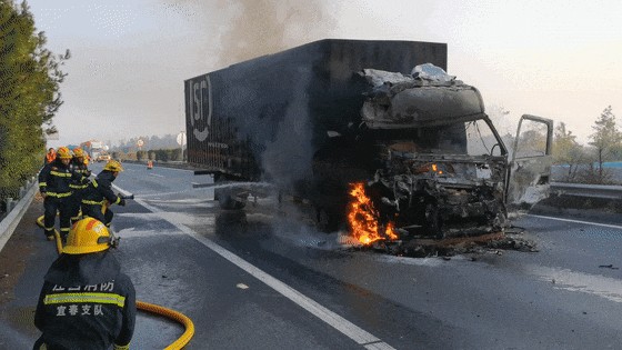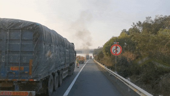 据快递车司机介绍,由于快递车与前车追尾,导致车头起火。发现起火后,司机第一时间利用灭火器灭火,但火势越烧越大,直至消防员到达现场后才将火势扑灭。