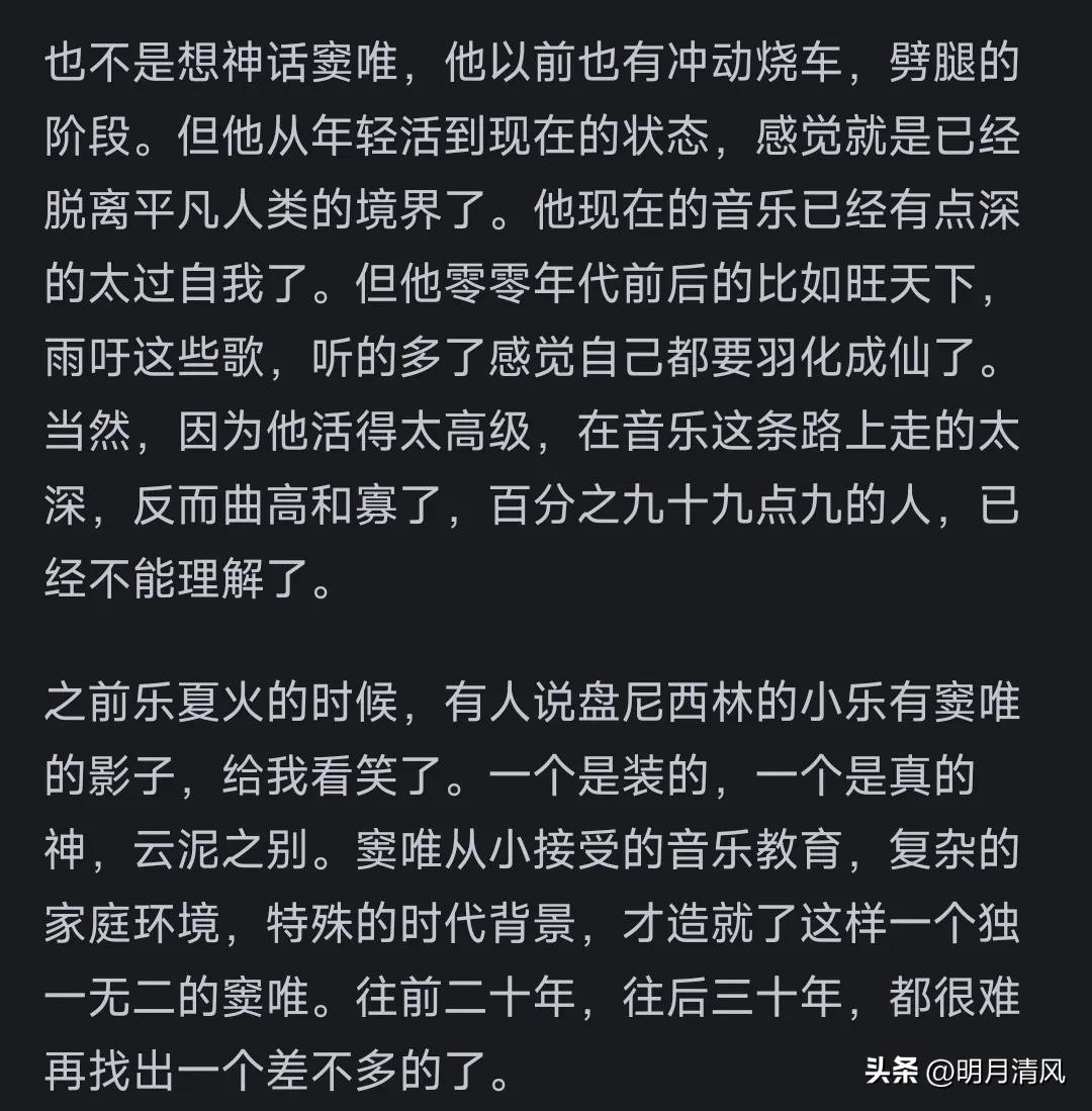 窦唯说过玩音乐的人就像建筑师一样一层一层的垒,他的音乐也是这样像房子一样多但是想听到好听的这得看当事人本人听众怎么去选择,好的音乐都是被人发掘的,每个人有每个人的口味很正常!