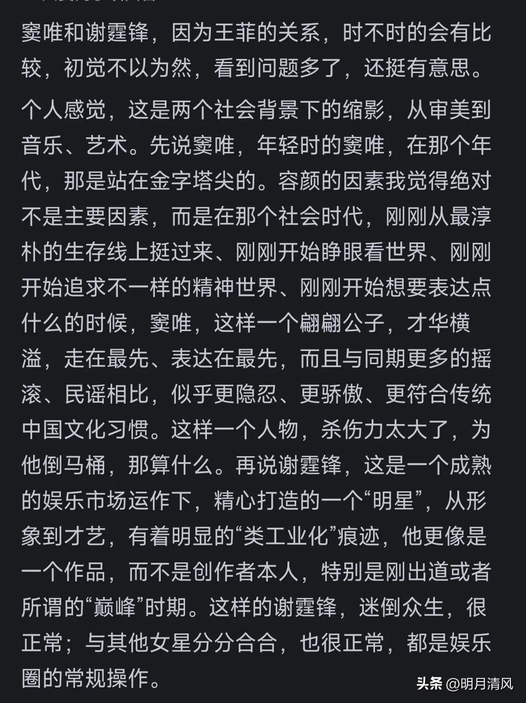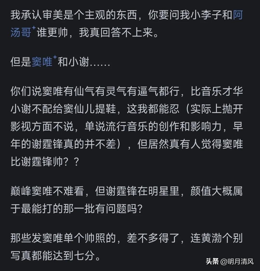 窦唯和谢霆锋,两位帅哥风格迥异,各有千秋。窦唯的帅,是那种不羁的、原始的帅气;而谢霆锋的帅,则是那种阳光、健康的帅气。他们俩就像是摇滚乐和流行乐的代表,各有各的魅力,各有各的粉丝。