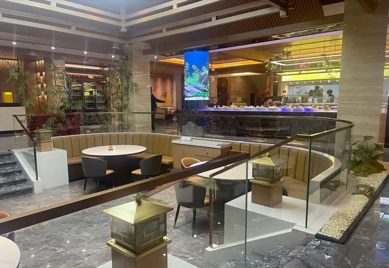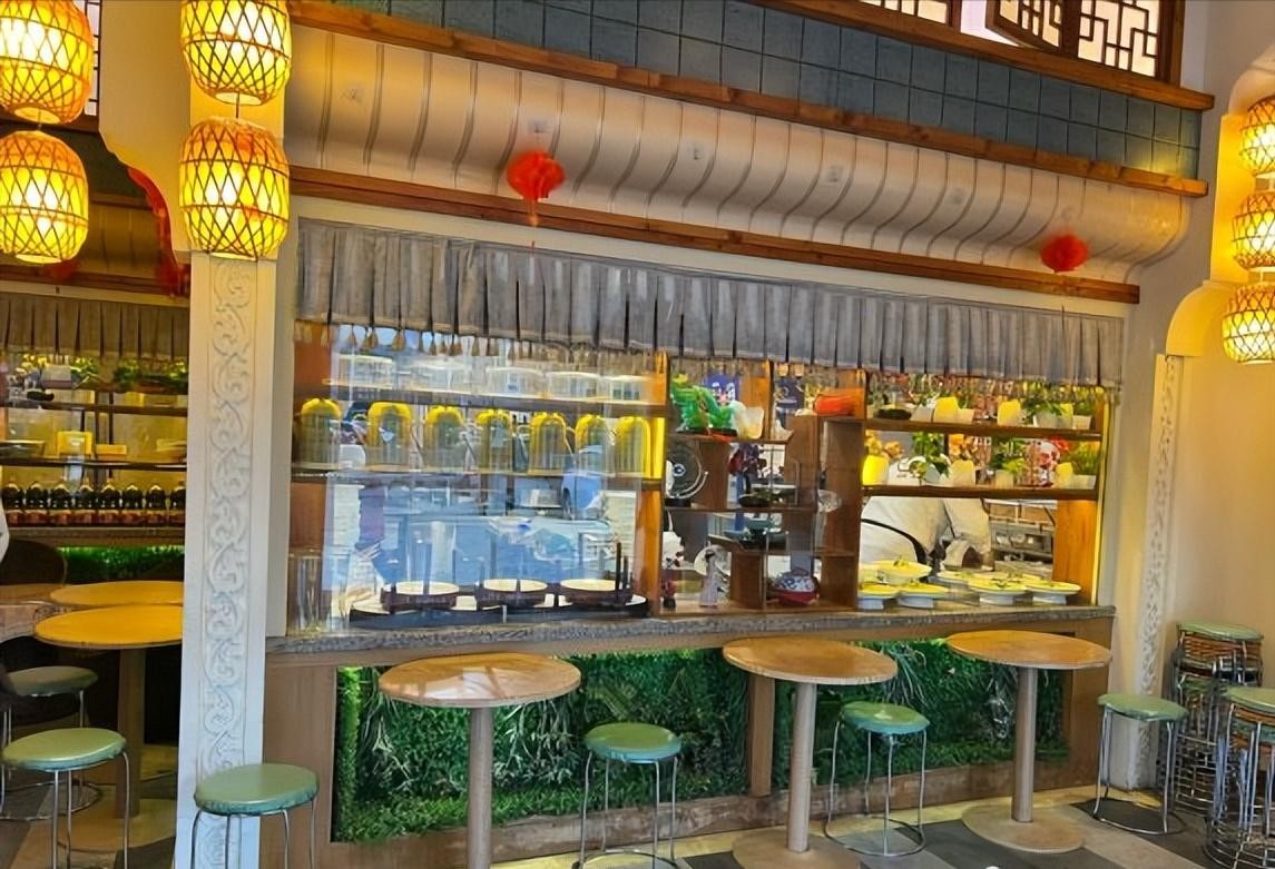 店内装修充满江南水乡韵味,小桥流水、绿植环绕,仿若置身江南庭院。