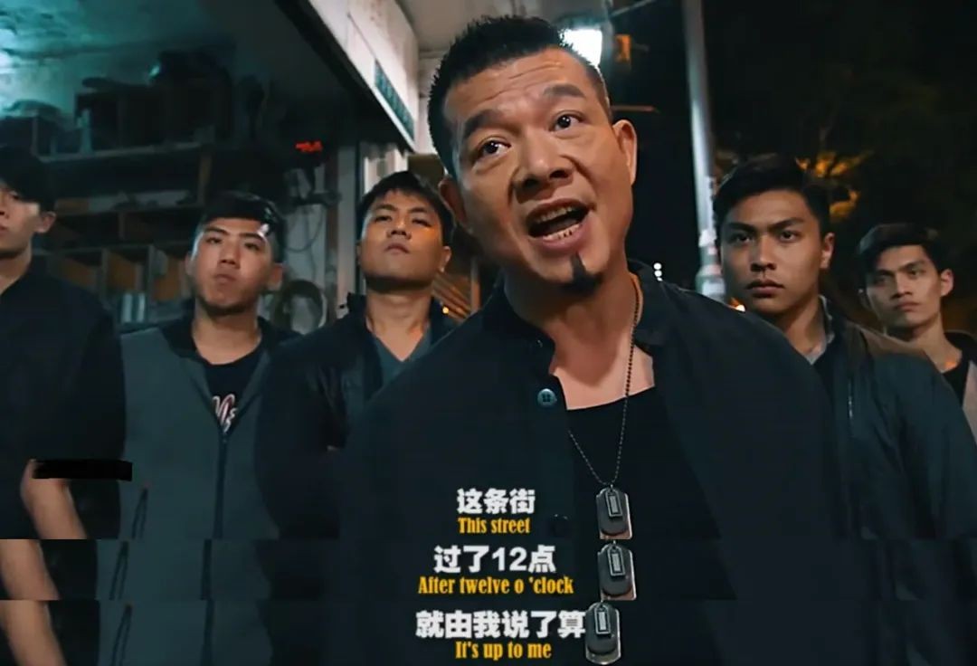 这段非常嚣张的表演致敬了吴毅将在电视剧《反黑》里的经典片段,原台词是他对警察说:“这条街,过了12点,就全由我说了算。”