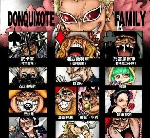 前言:名字往往暗喻着人生与性格。尾田更是这方面的专家。唐吉诃德•多弗朗明哥,唐吉诃德源自西班牙作家塞万提斯的反骑士小说《唐·吉诃德》,Flamingo则是火烈鸟;赛尼奥尔(Senor)为西班牙语的“绅士”,皮克(Pink)取自英语的“粉红色”。