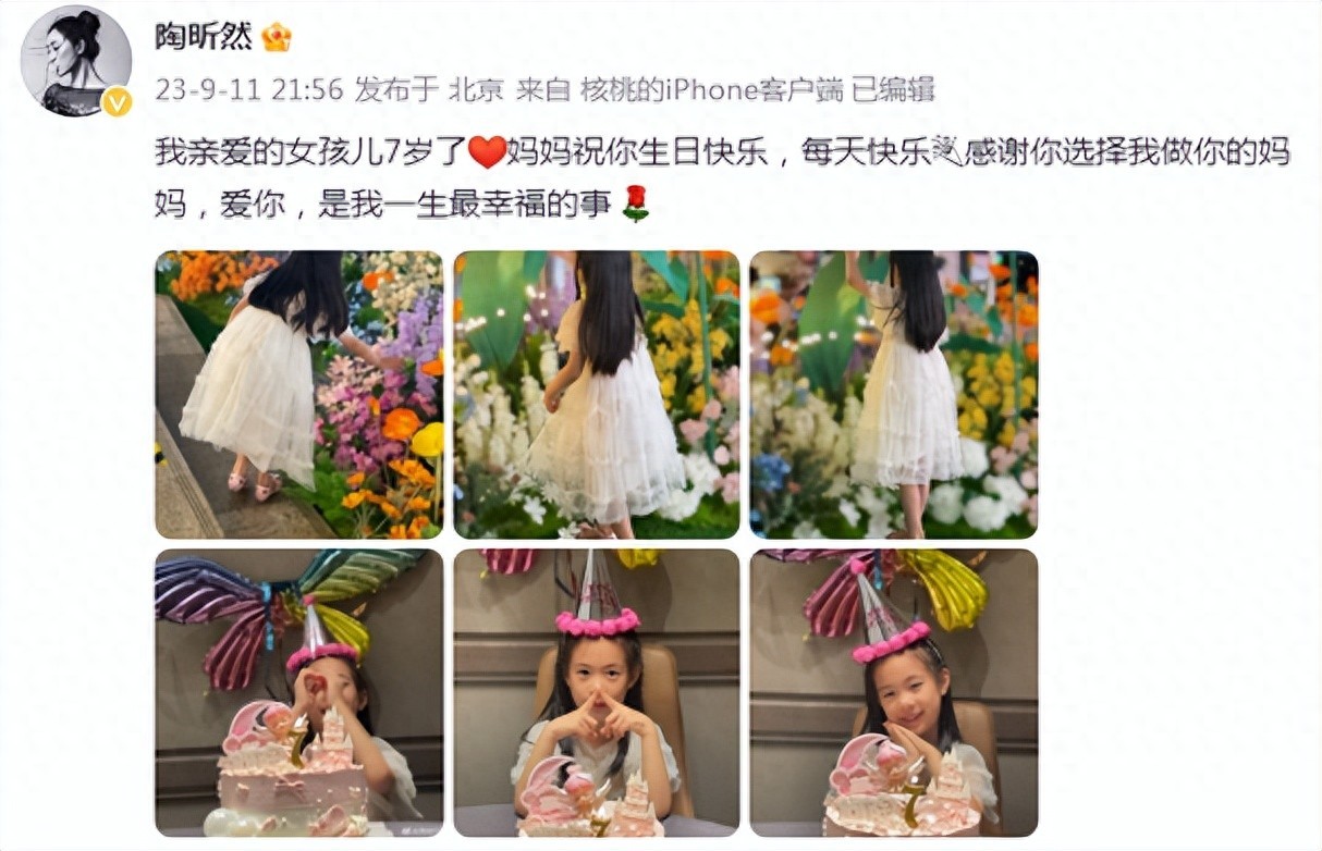 9月11日晚,演员陶昕然与老公何建泽先后发文为爱女何陶庆祝7岁生日,而每年只有在为女儿庆生时才同框的一家三口,吸引不少网友关注。