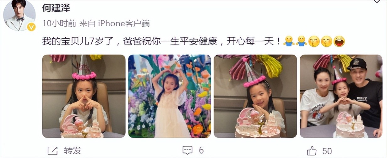 对于迎来7岁生日的女儿,陶昕然开心写道:“我亲爱的女孩儿7岁了,妈妈祝你生日快乐,每天快乐,感谢你选择我做你的妈妈,爱你,是我一生最幸福的事”,相比之下,身为爸爸的何建泽祝福语就简单多了,他写道:“爸爸祝你一生平安健康,开心每一天”。两夫妻的文字虽说都并不是很长,但每一字每一言都能感受到他们对女儿满满的爱,令人无比感动。