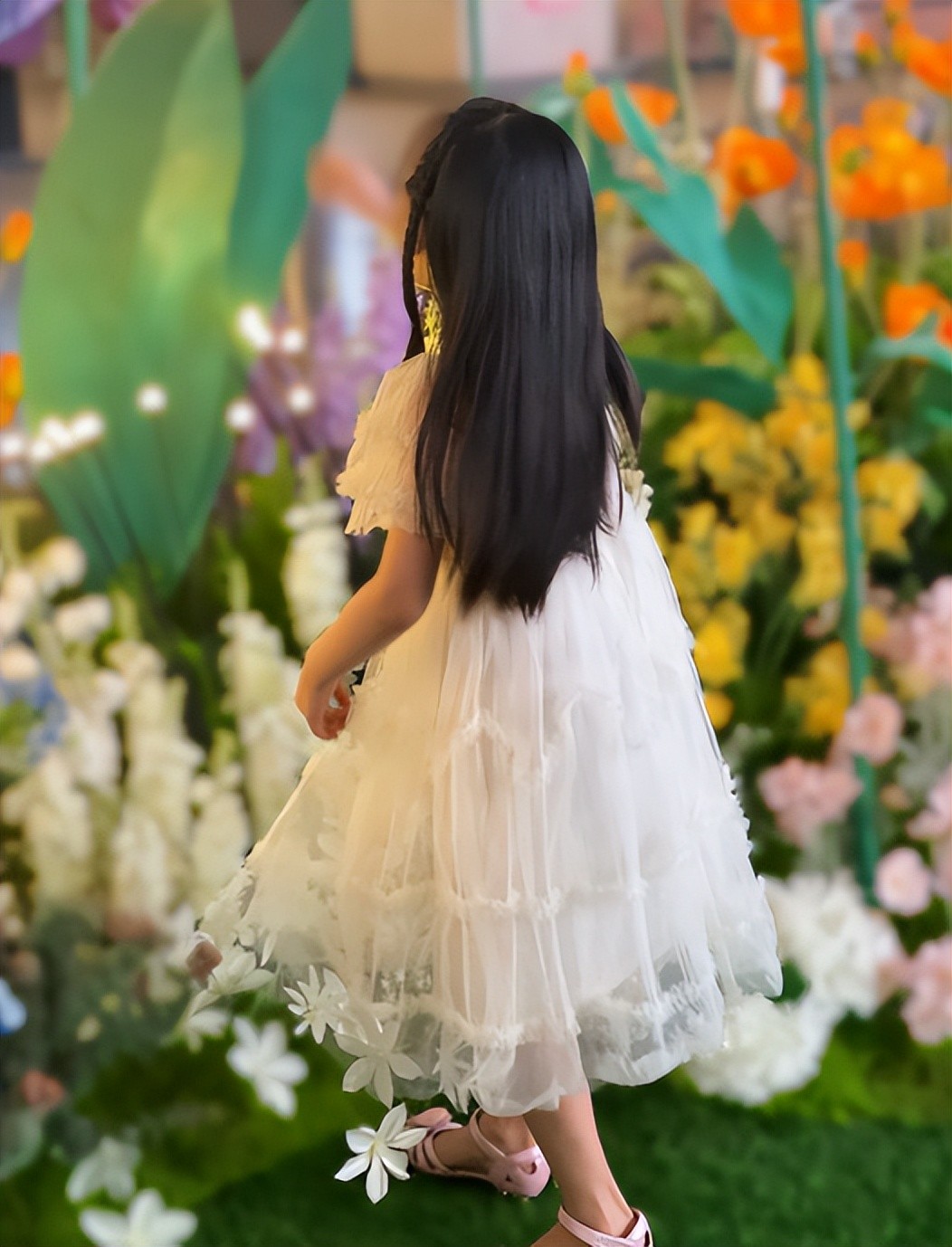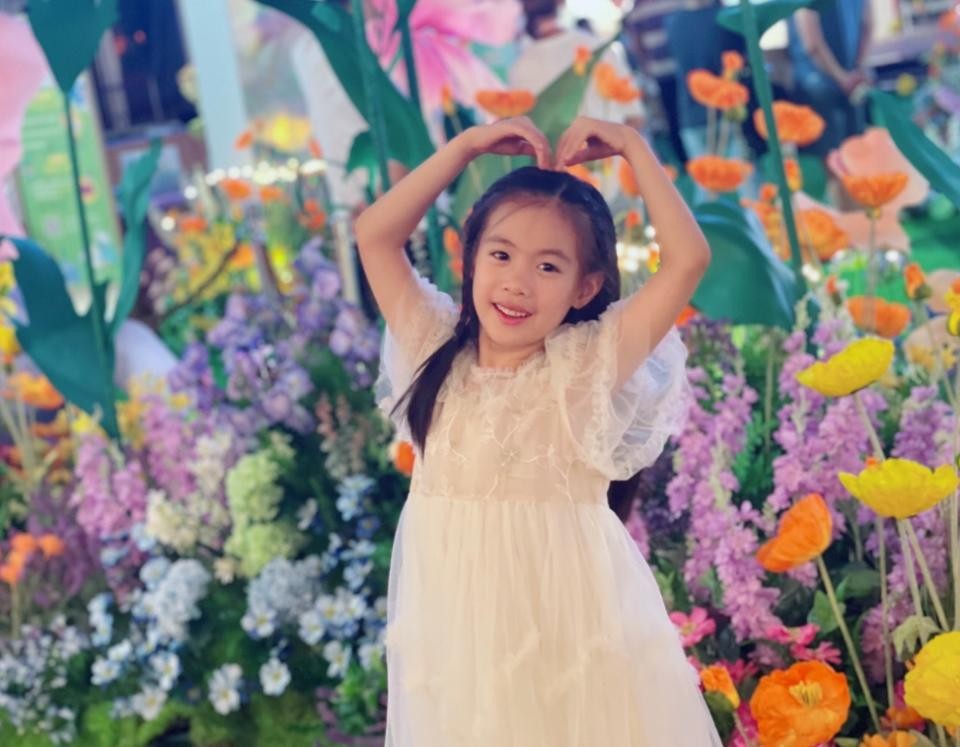 转眼已经7岁的小何陶出落的愈发漂亮,照片中,小何陶披散着一头长发,身穿白纱公主裙,将双手放在头顶比心,脸上洋溢着甜美笑容,好治愈。
