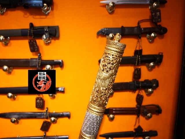 一把康熙使用的“战刀”,在哈尔滨道台府古玩城展出。这是按着康熙使用的战刀一比一比例复制的。