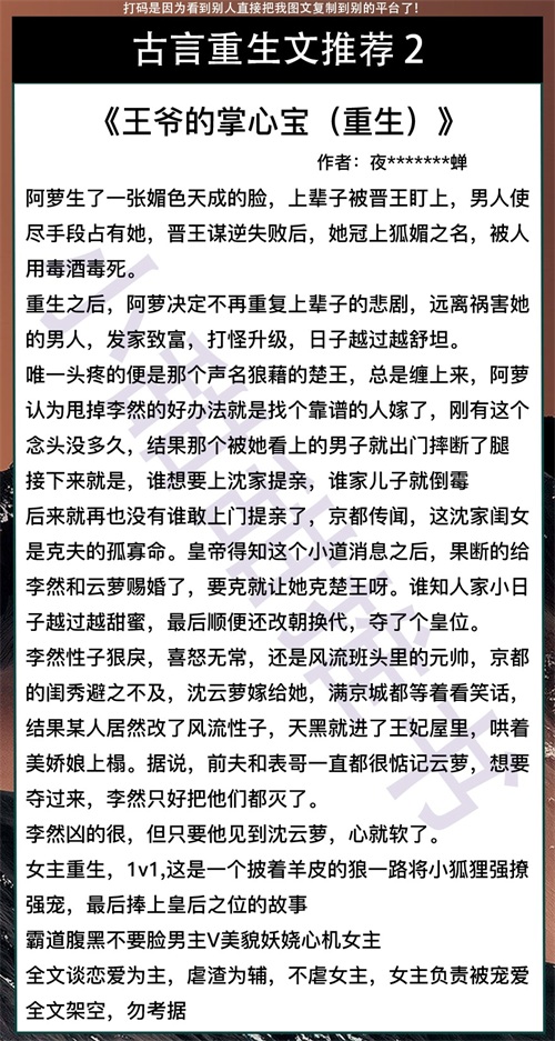 第六本《王爷的掌心宝(重生)》作者:夜*******蝉