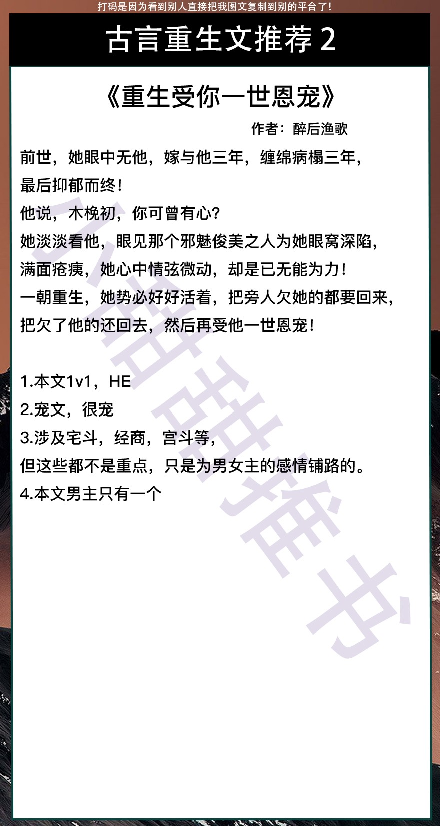求关注,求转发,求点赞,求评论!大家好,我是小甜甜,每天给大家推荐好文。这期给大家推荐的还是古言重生文!今天推的都是晋江的,所以都是比较短篇的!熬夜必备呀!哈哈哈哈哈哈哈哈
