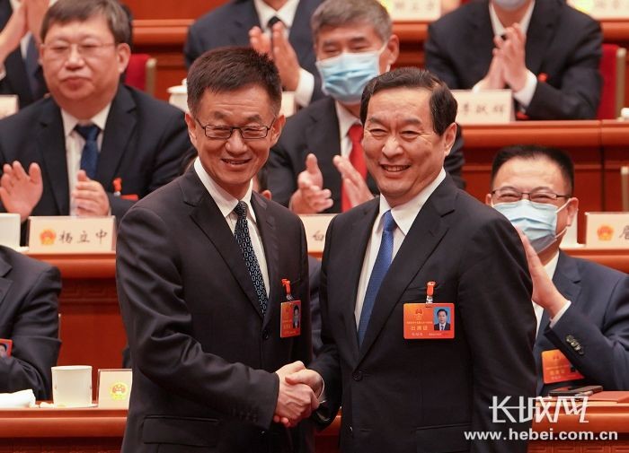 马宇骏(左一)当选石家庄市人民政府市长。长城网记者 张超 摄