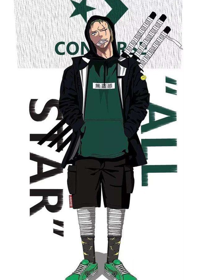 山治是海贼王中最绅士的一名角色,信仰着骑士道精神,虽然非常花心,但花心的很有风度,穿上潮牌后的山治依旧是烟不离手,看上去也让人有种安全感,相信有不少女海迷们会心动吧。
