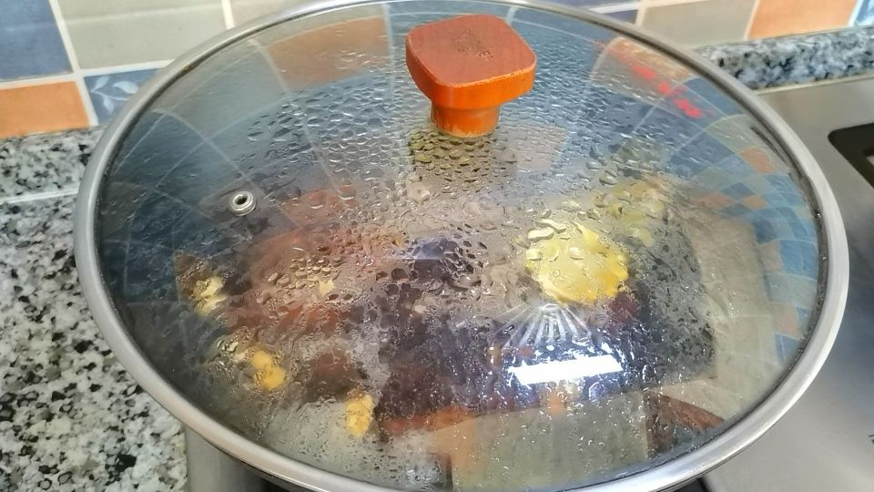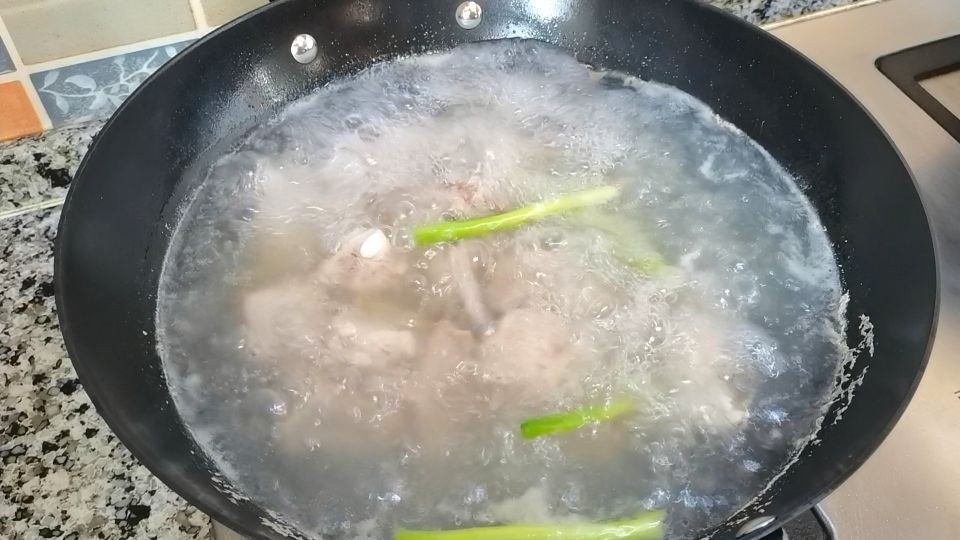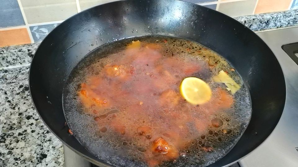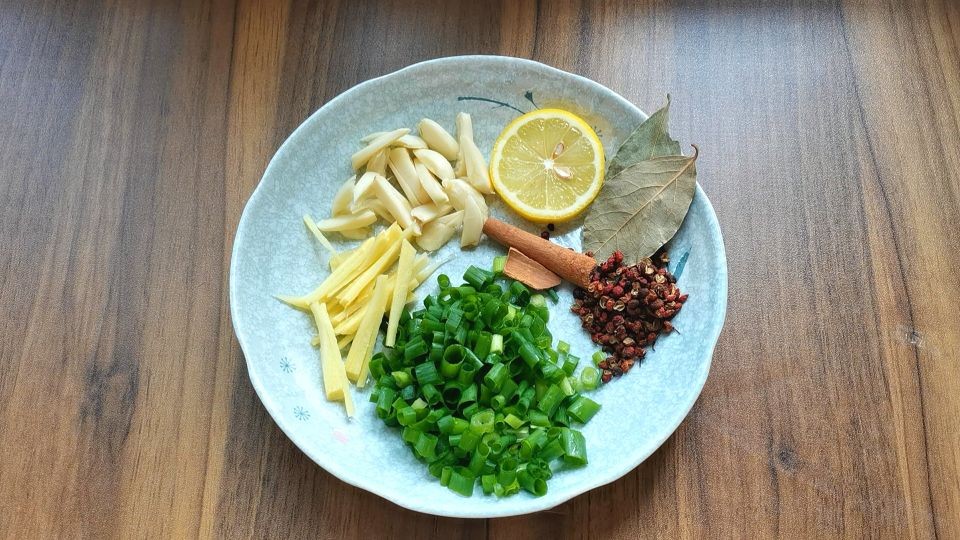 7,加清水,下一片柠檬或者料酒,加适量的盐、生抽、老抽。