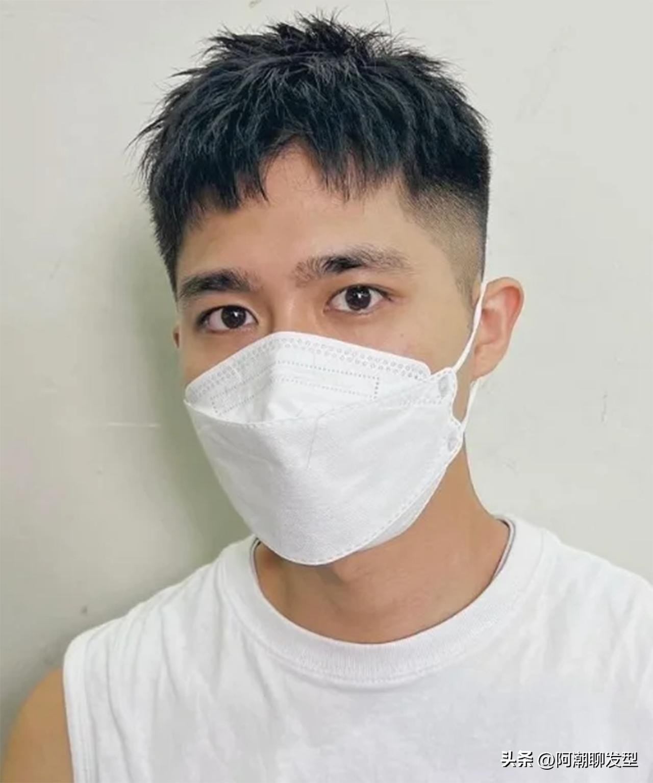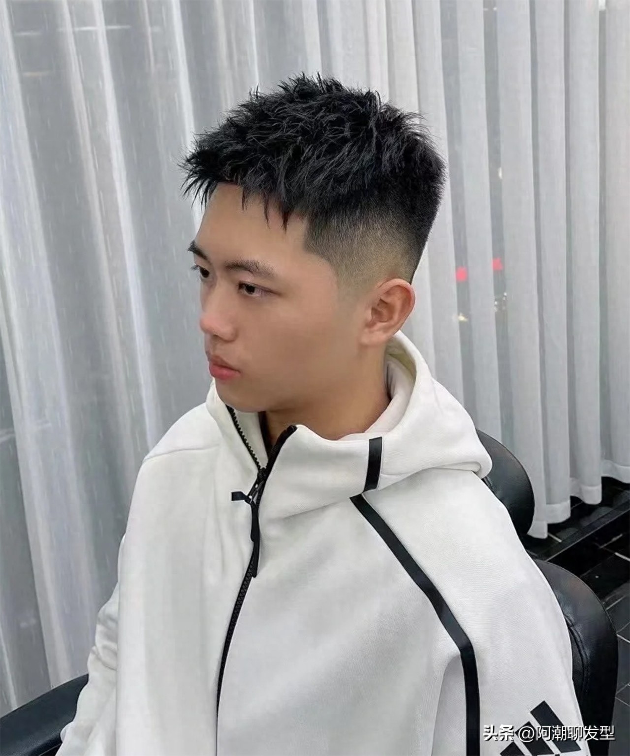 或者像上面这位小哥哥一样也OK,两边的头发渐层铲短,顶区的头发及刘海保留一定的长度,再剪碎一些,在打造造型的时候打造出3/7侧分凌乱碎发效果,这样整个发型看起来既显得时尚减龄,又显得帅气有型,很适合年轻的小哥哥去剪。
