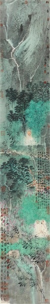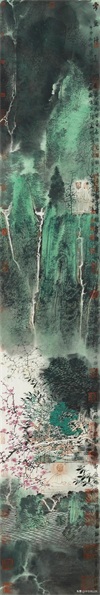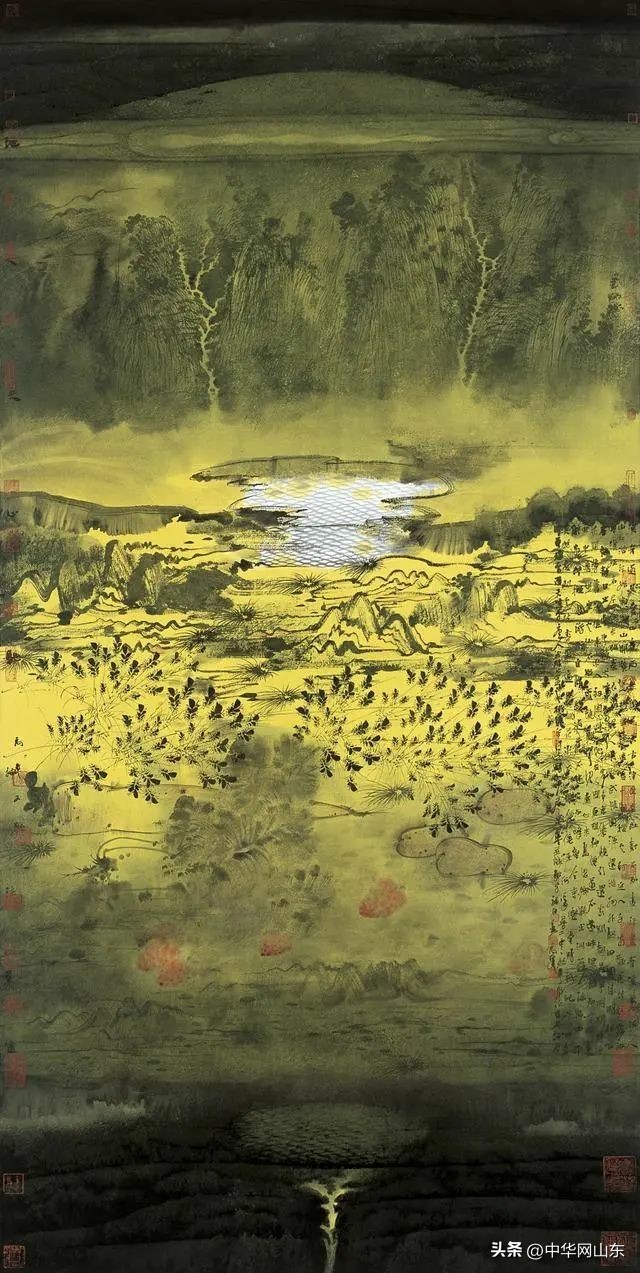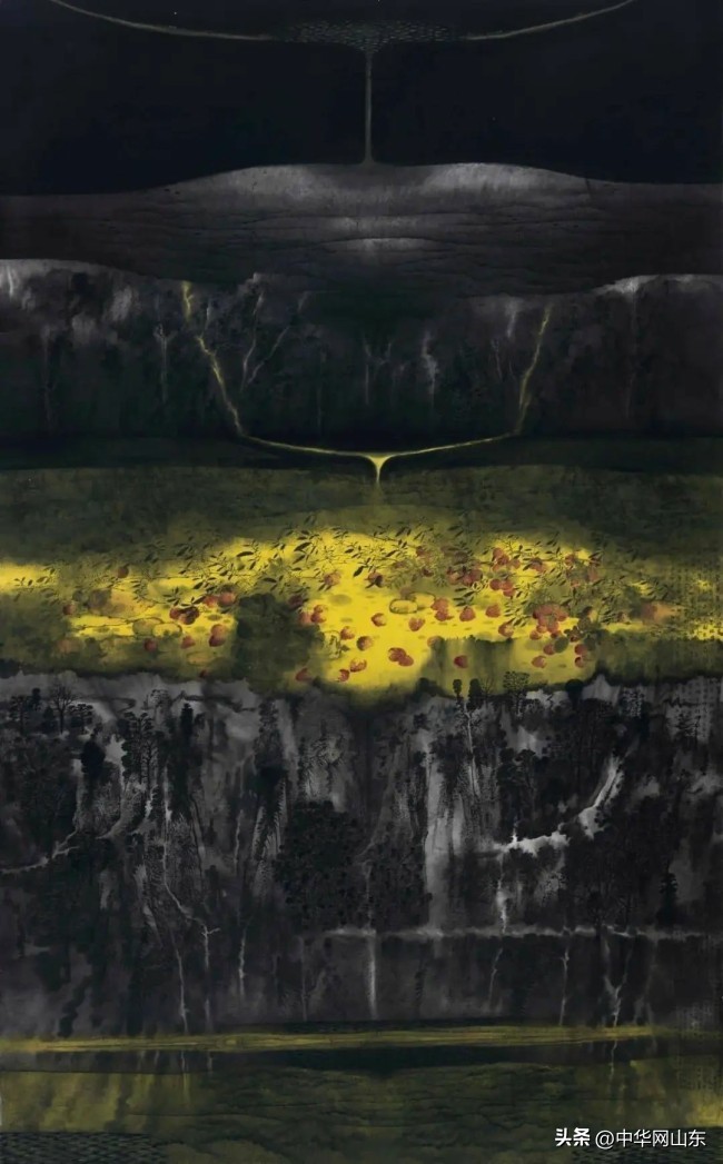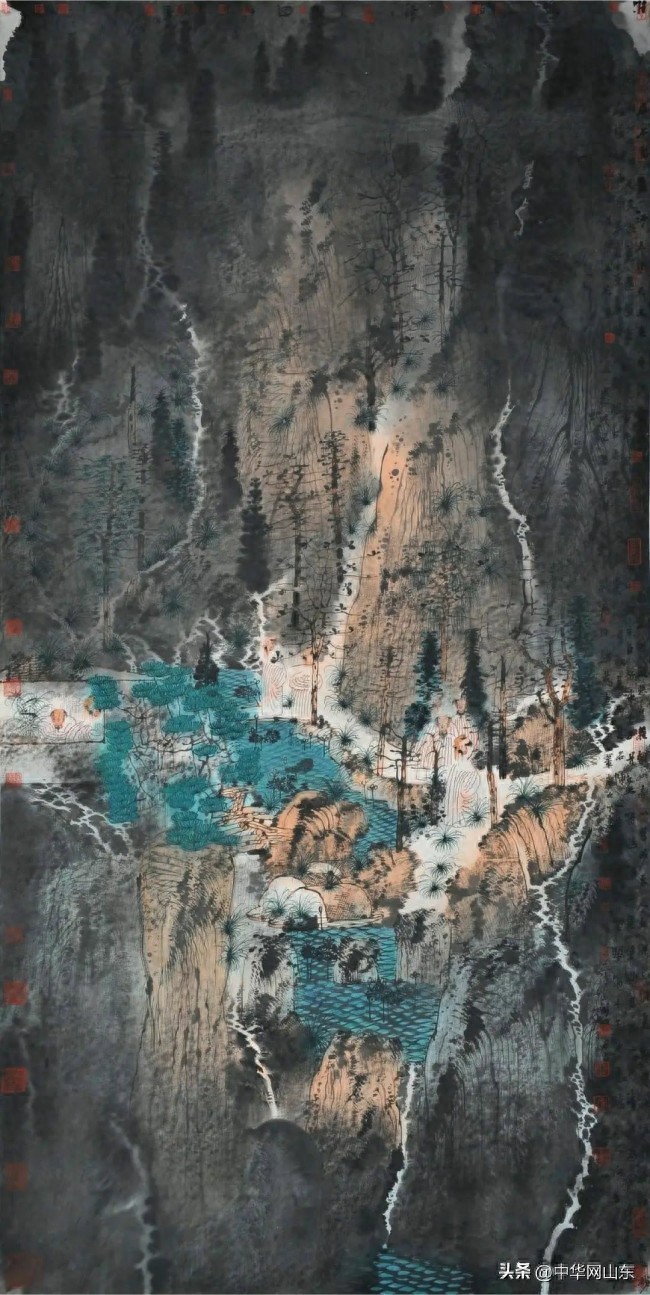卢禹舜的山水画色彩深沉,富有变化。他在继承传统水墨画的基础上,大胆尝试运用红色、绿色、黄色等鲜艳色彩,使得画面更加丰富多彩。他的色彩运用往往与墨色相互衬托,形成独特的艺术效果。这种色彩的斑斓和变化,不仅增强了画面的视觉冲击力,也使得他的山水画作品更加具有现代感和时代气息。