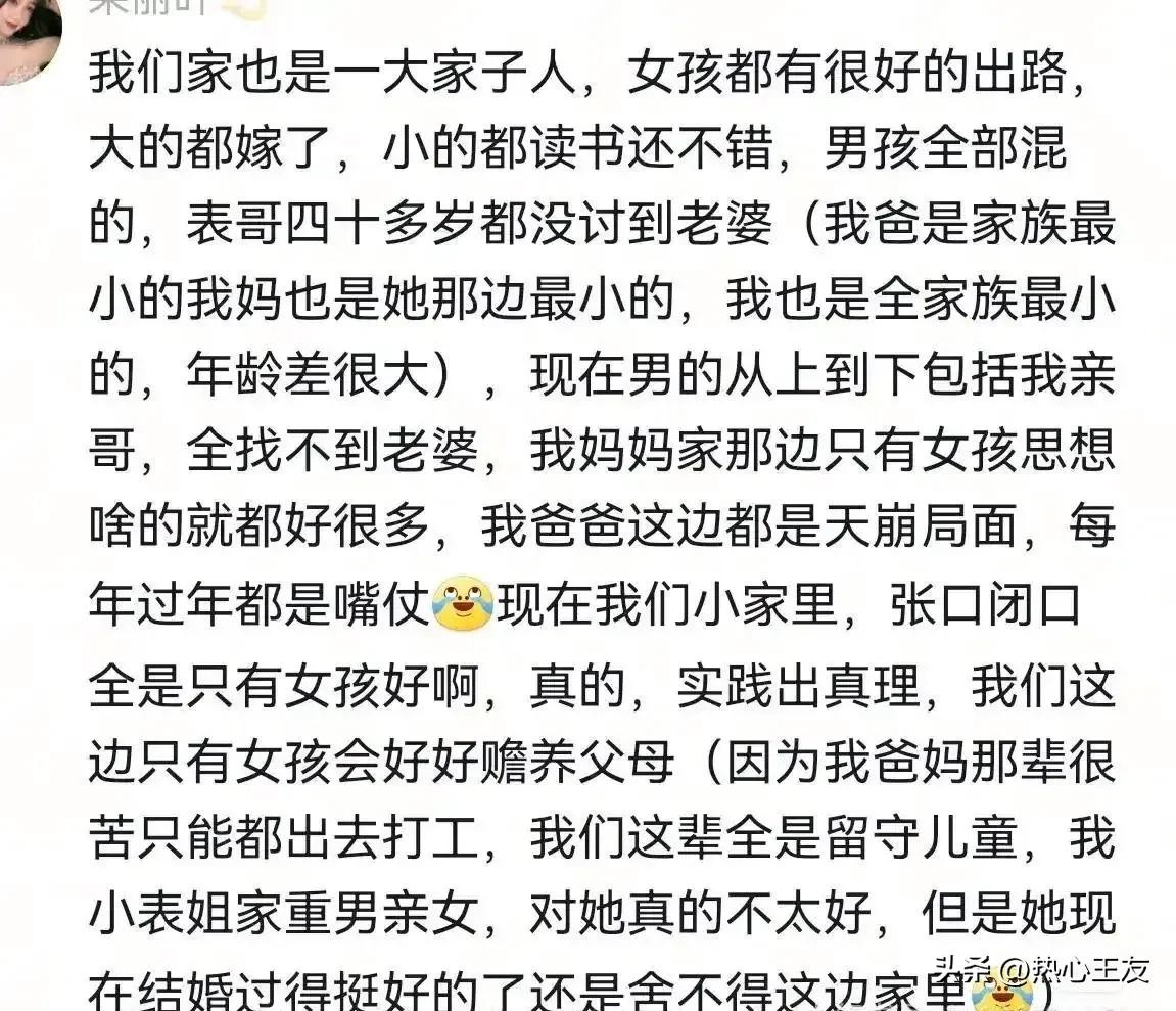 你们怎么看?你们有没有亲身经历过类似的事情?现在的农村,重男轻女的观念有没有发生变化呢?欢迎大家在评论区分享自己的看法和故事!