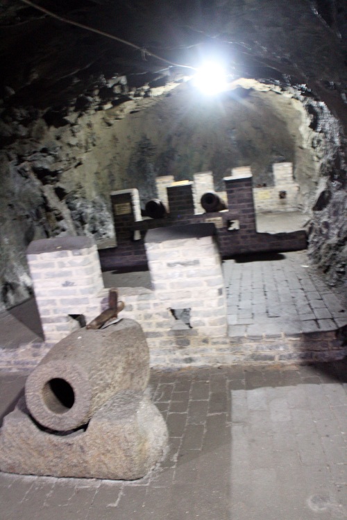 一进洞,眼前这个地方怎么就被封住了?原来是做什么用的?总之,现在是从两边进入,说是可以走一圈。有人从里面出来说地上有水,没走远;我们还是决定进去看看。