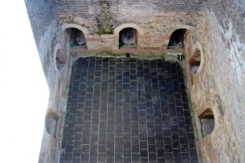 这里像是座瓮城,这里叫围城,作用是水牢。在九孔上面平台中间位置向下看到。