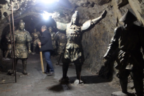 这个隧道里还有很多大小不一的洞,现在用做一些情景展览。