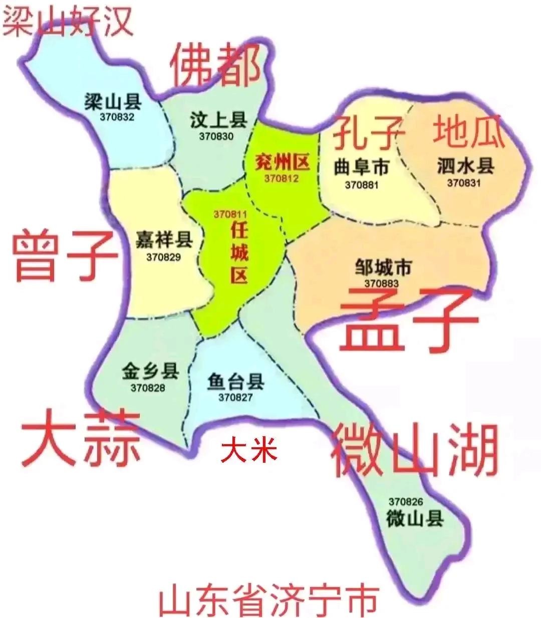 除了孔子的老家山东省济宁市曲阜市,交通要道山东省济宁市兖州区,水泊梁山好汉名扬天下外,济宁市管辖的其他县市区,也都有值得称道的地方。