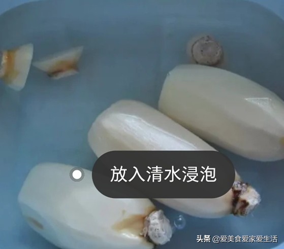 4、将切去蒂头的藕放入清水中,浸泡15分钟(因为藕孔内会有泥沙,浸泡一会可以去掉泥沙)。