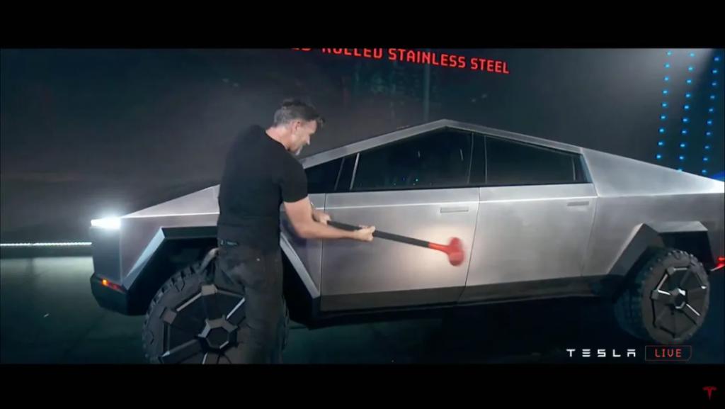 不是因为这玩意能装三个电机,牵引力比纯电的福特 F150 还猛、加速比保时捷 911 还快;也不是因为马斯克为了展示 Cybertruck 很坚固,当场就让人拿着锤子对车哐哐一顿抡。