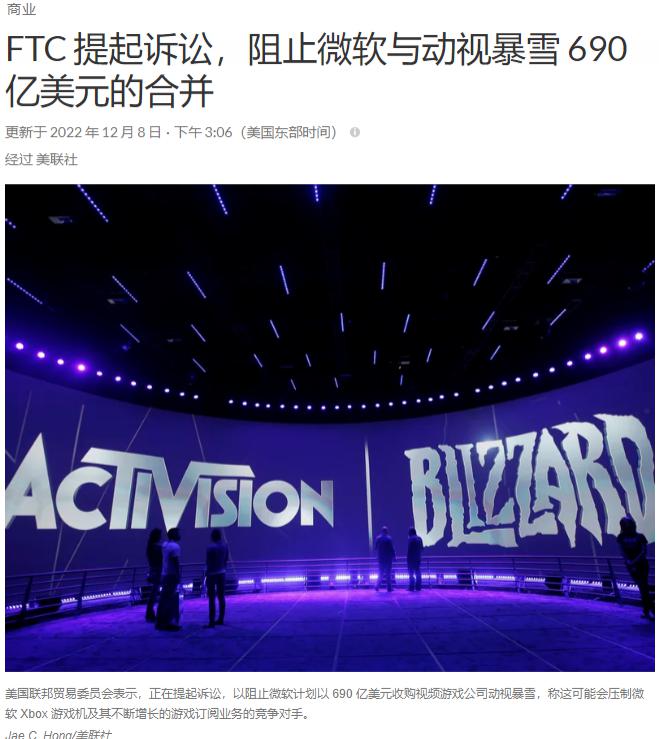 美联社:FTC 提起诉讼,组织微软与动视暴雪 690 亿美元的合并、