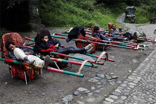 河北野三坡百里峡的滑竿挑夫(周国献2010年9月拍摄)
