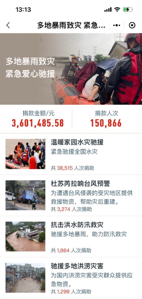腾讯公益平台爱心网友纷纷驰援受灾地区