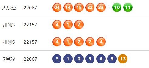 中国体育彩票7星彩第22067期开奖公告