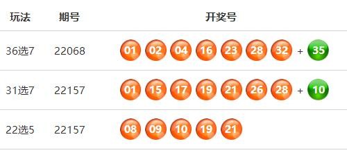 中国体育彩票福建31选7第22157期开奖公告