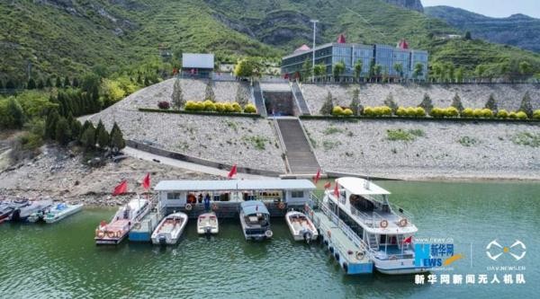 库区的码头提供快艇、游轮等供游客嬉戏。新华网发(付宇鹏摄)
