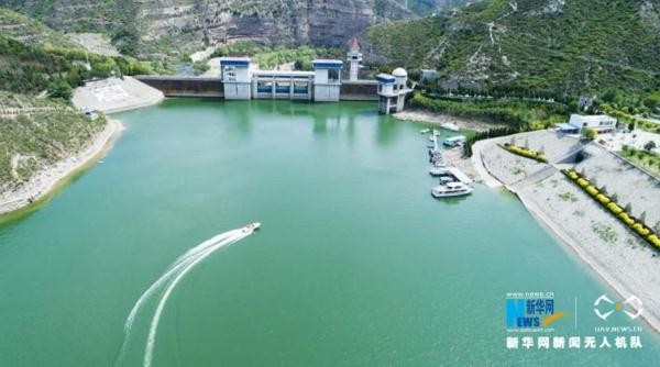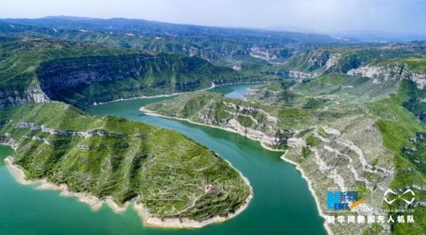 被青山“环抱”的汾河二库库区。新华网发(付宇鹏摄)