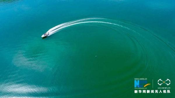 快艇在水库中穿梭而过。新华网发(付宇鹏摄)