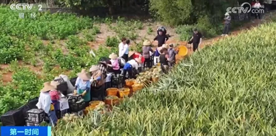 广东徐闻是我国菠萝主产区,全国近三分之一的菠萝都来自这里。进入三月下旬,这里也迎来大规模采摘,吸引了全国各地的采购商。