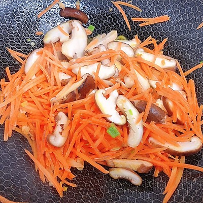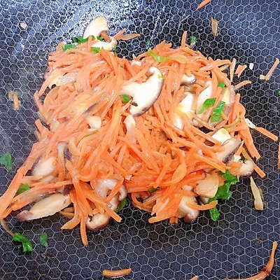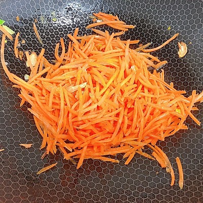 5、加入胡萝卜丝,翻炒约1分钟