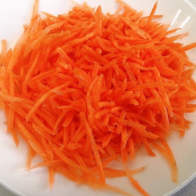 1、胡萝卜去皮洗净,切丝