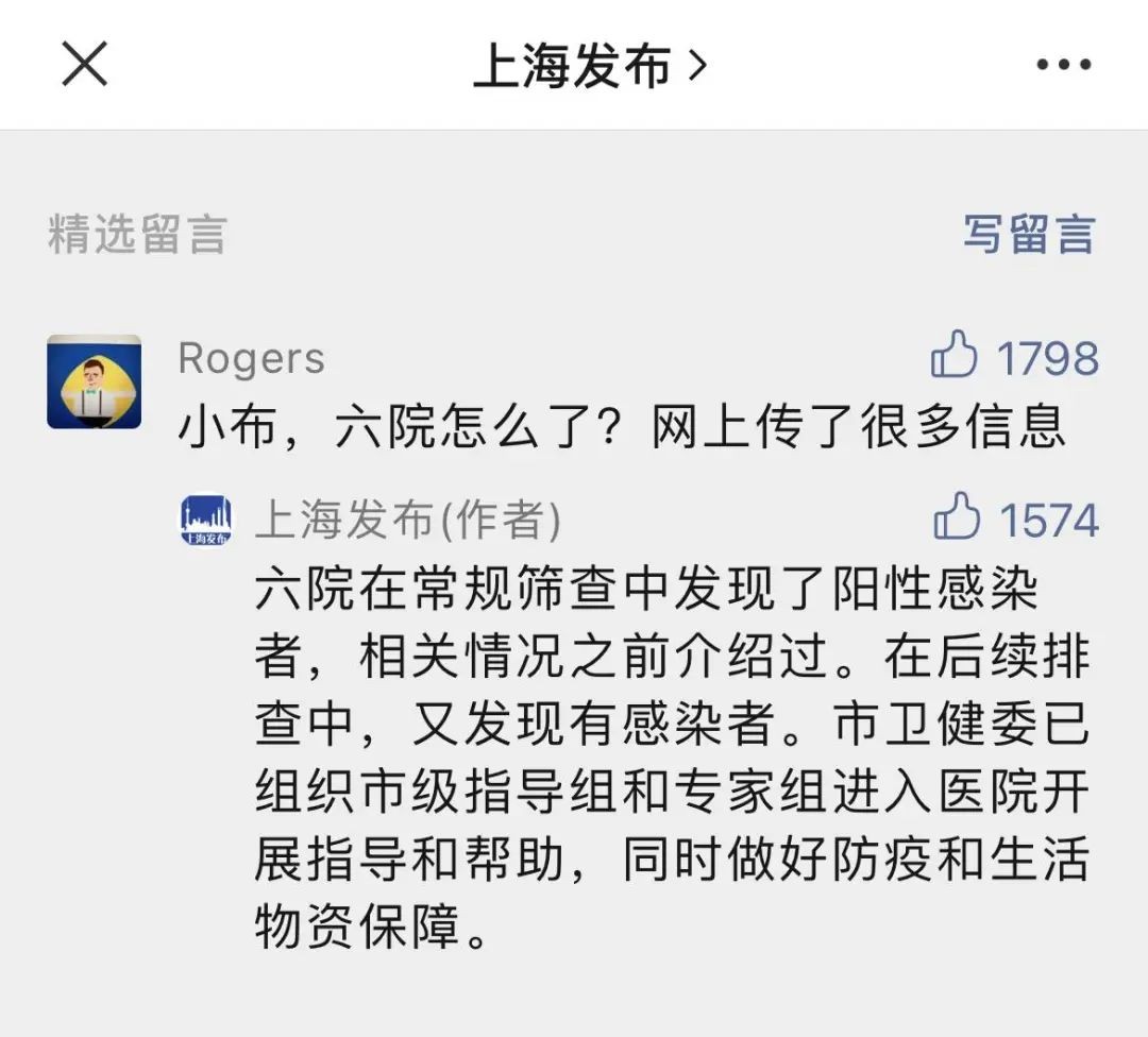 “上海发布”回应上海市第六人民医院情况