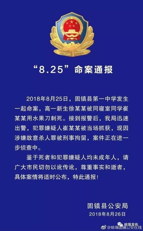 安徽新生刺死室友真相始末蚌埠固镇公安通报固镇一中杀人案情况