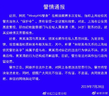 【黄毅清已被停止行拘】28日,据@虹口公安分局 ,黄毅清因私人恩怨纠葛发谣言,其行为已构成寻衅滋事,黄毅清被行拘。29日警方发布通报称,对黄毅清做出行拘5日的处分决定;但因其右根骨存在骨折的病情,医院确认其必须立刻进行手术,警方已做出依法停止对其行拘的决定。