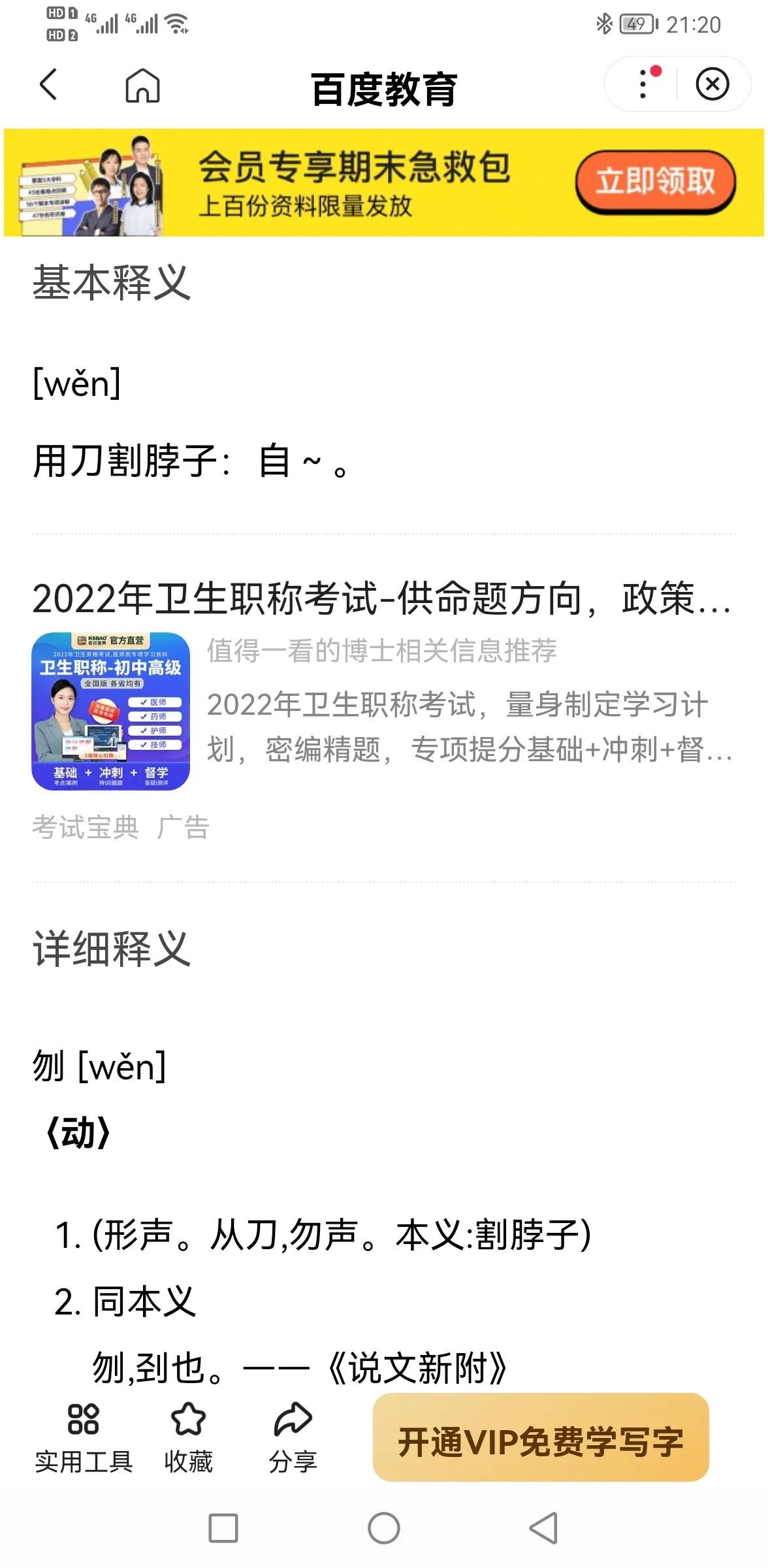 刎的读音与释义