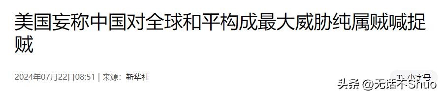 信息来源于新华社2024年7月22日关于美国妄称中国对全球和平构成最大威胁纯属贼喊捉贼