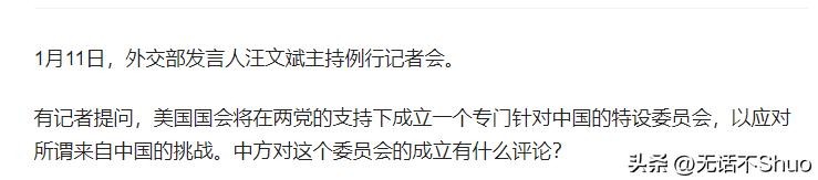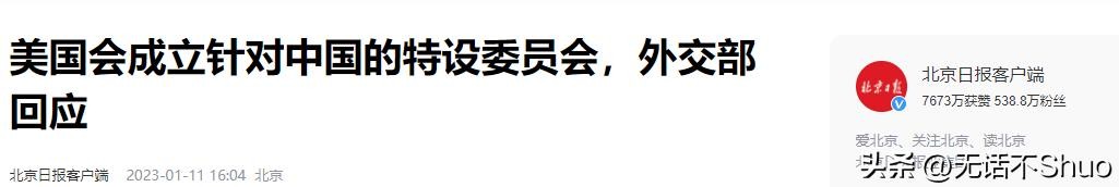 信息来源于北京日报客户端2023年1月11日关于美国会成立针对中国的特设委员会,外交部回应